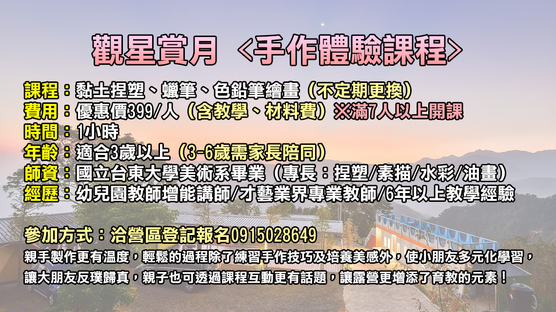 ※ 夜衝不開放線上選項,一律於訂位後洽「觀星賞月 FB」私訊給營主登記,才可夜衝進場。