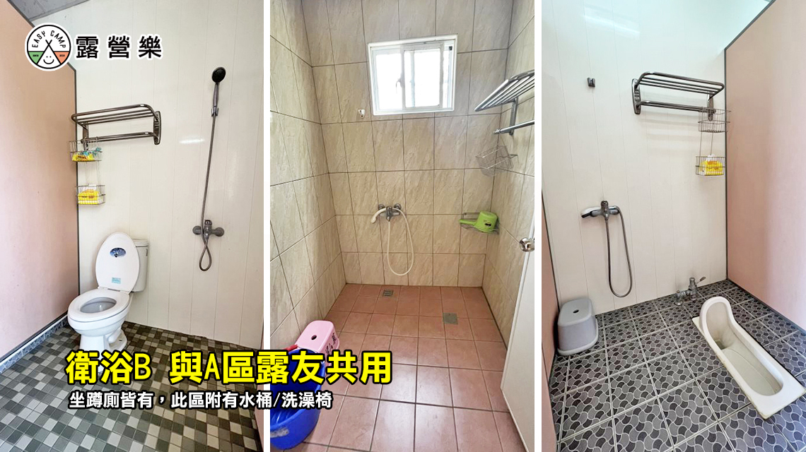 衛浴A男女共用: 蹲廁1間、淋浴1間、便斗1座。