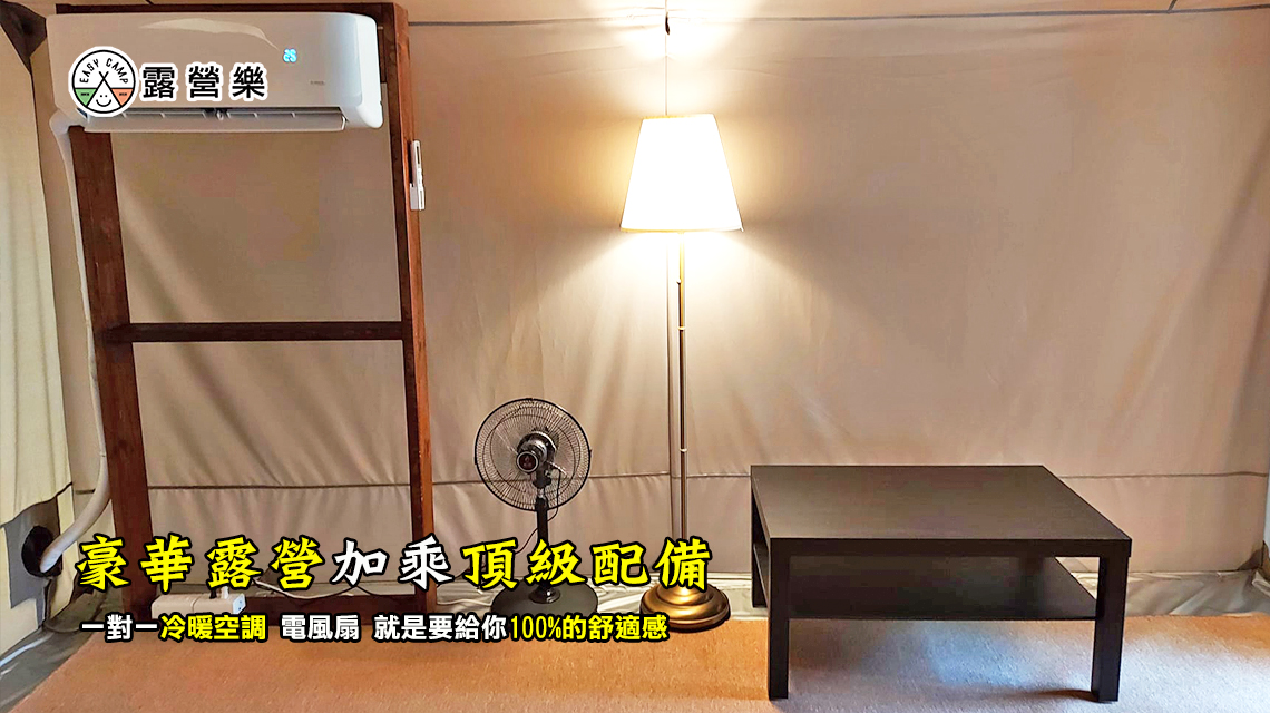 ※ 帳篷冷房效果有限,冷氣僅以調節夜晚溫度,避免悶熱為目的,白天若不夠冷請多包涵。
