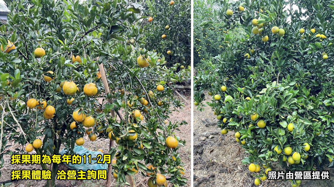 ※ 每逢11月底開始會有珍珠柑、柳丁、臍橙、帝王柑、金棗....等等成熟期,歡迎露友來體驗採果樂。