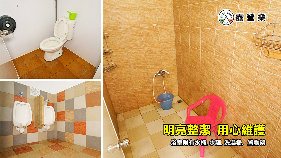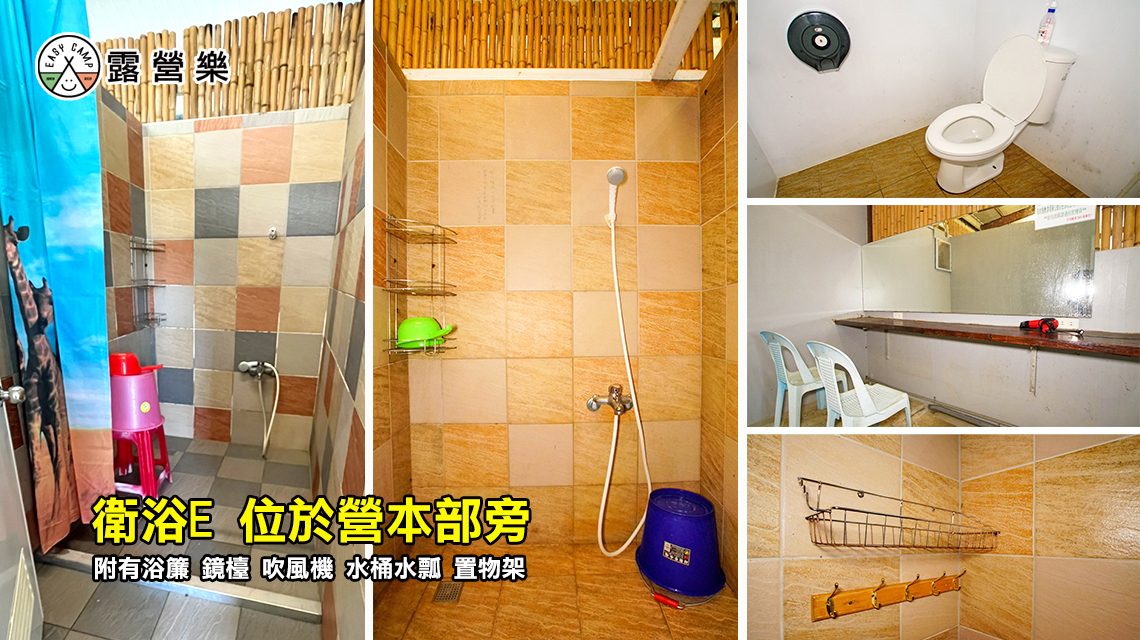 衛浴E:男坐廁2間、浴室2間、便斗2座;女坐2間、浴室2間。