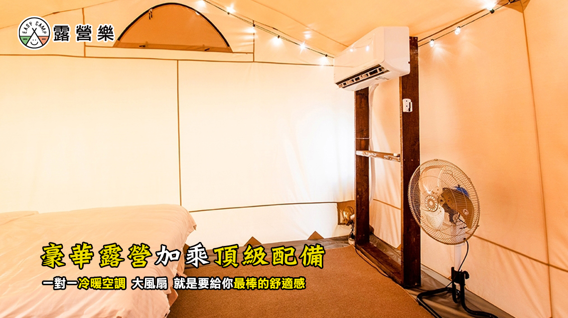 ※ 帳篷冷房效果有限,冷氣僅以調節夜晚溫度,避免悶熱為目的,白天若不夠冷請多包涵。