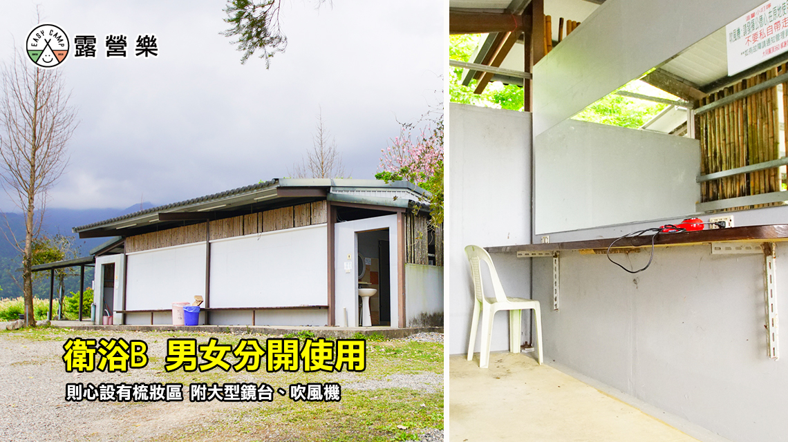 衛浴B:男坐廁2間、浴室3間、便斗2座;女坐廁3間、浴室3間。