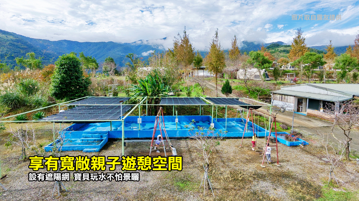場地寬闊,有戲水池、鞦韆、營主手工麵包,季節可賞花