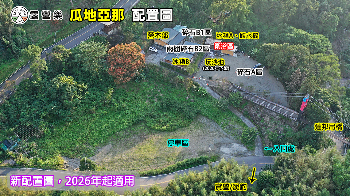 ● 2026/1/2起,碎石A區連假改為$1200/帳、過年為$1400/帳。