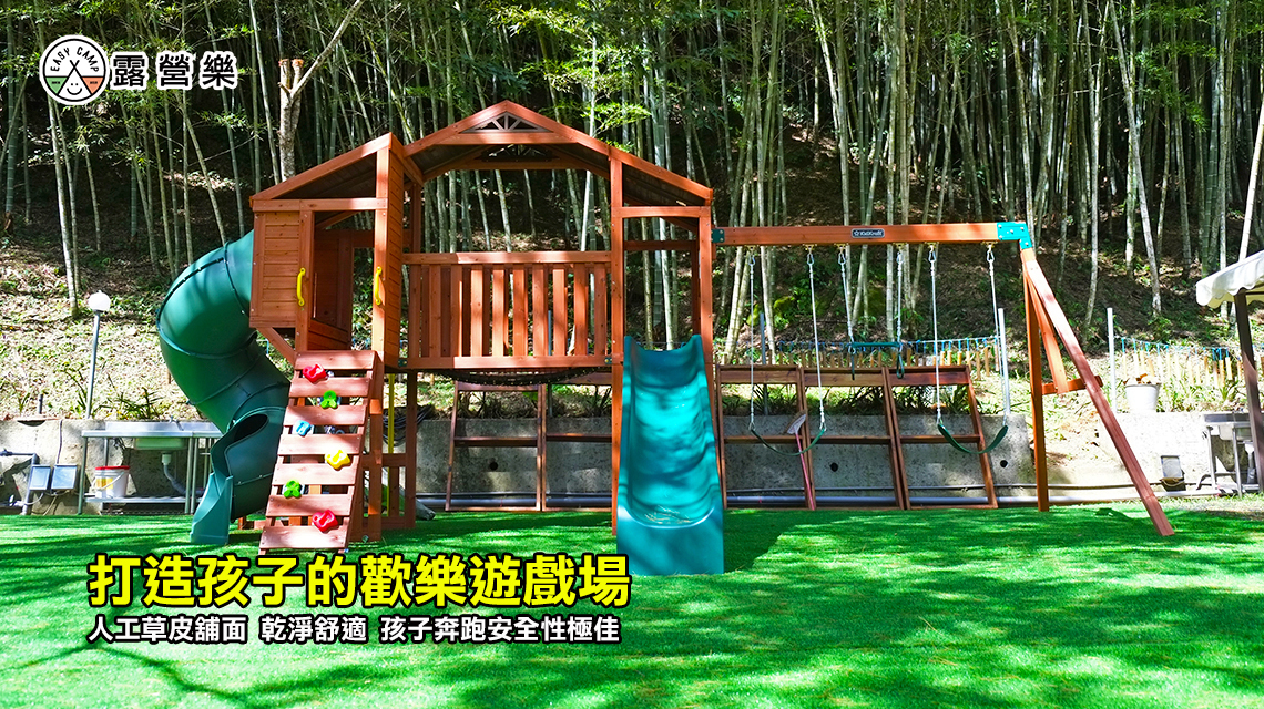 露營區旁就有遊樂設施,小孩就不需要跑太遠,大人也會比較放心,很適合有小孩的不想帶一或是搭的懶人露營!