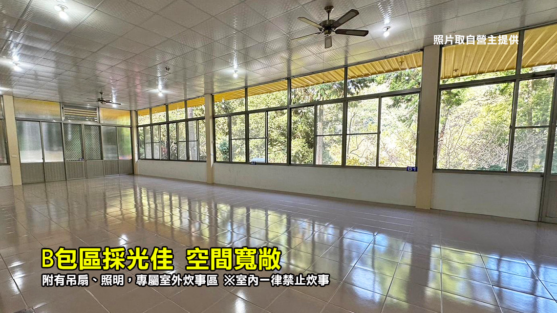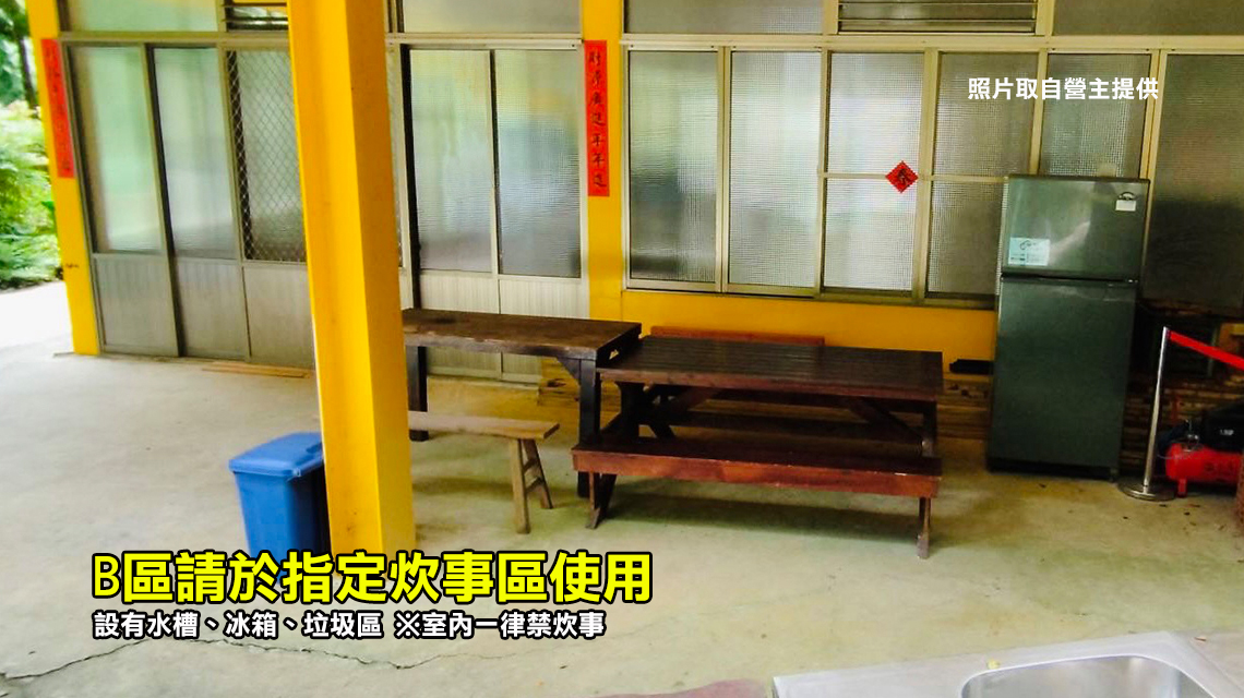 ※ B區為室內禁止炊煮,請至室外指定炊事區使用,附有水槽及垃圾桶。