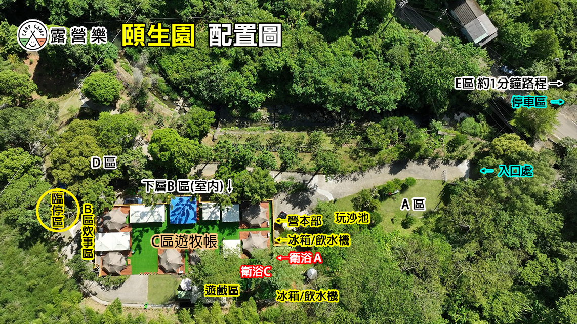 ※ E包區(5帳)草皮+涼亭,說明如下: