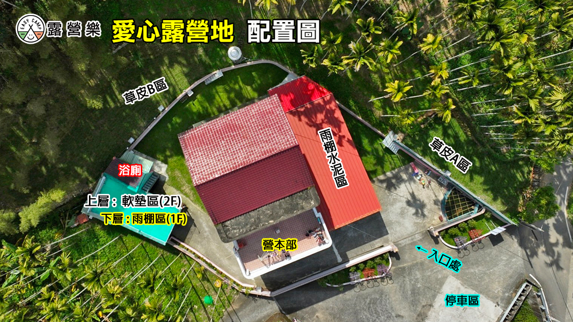 ※ 雨棚水泥區:水槽2座、電箱2座(每座插孔2個,請備延長線5M-10M以上),集中停車。