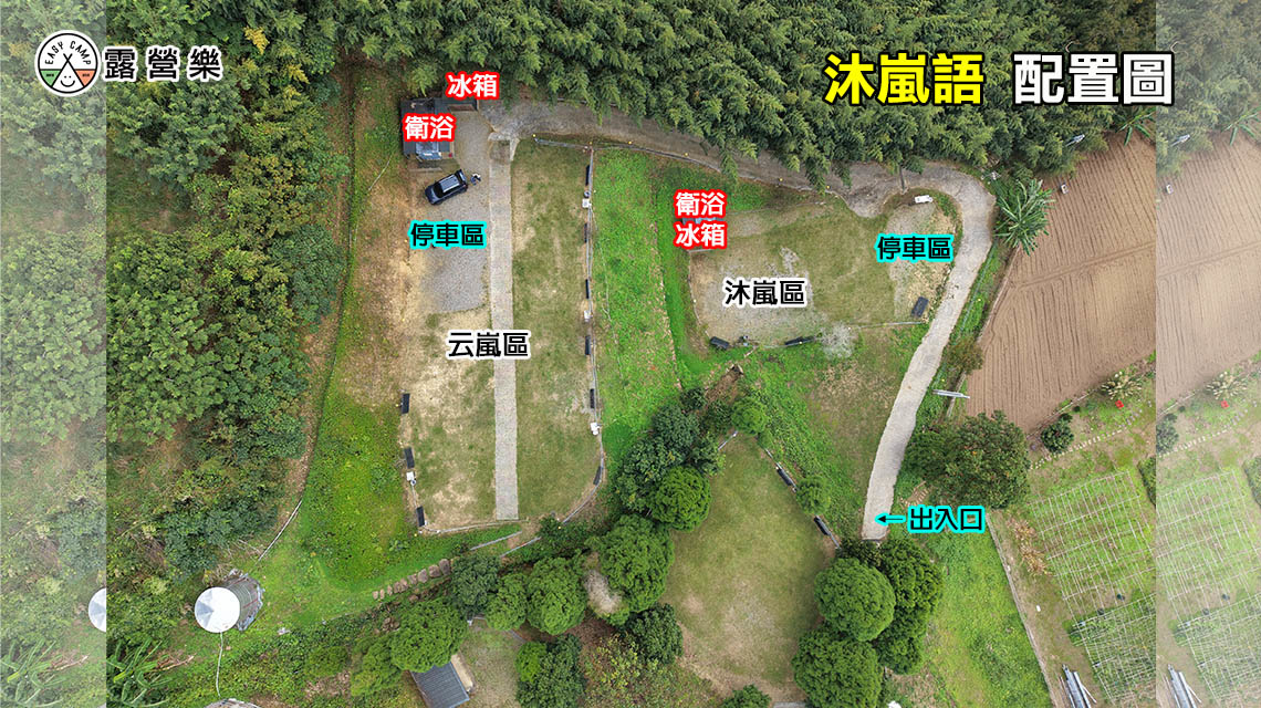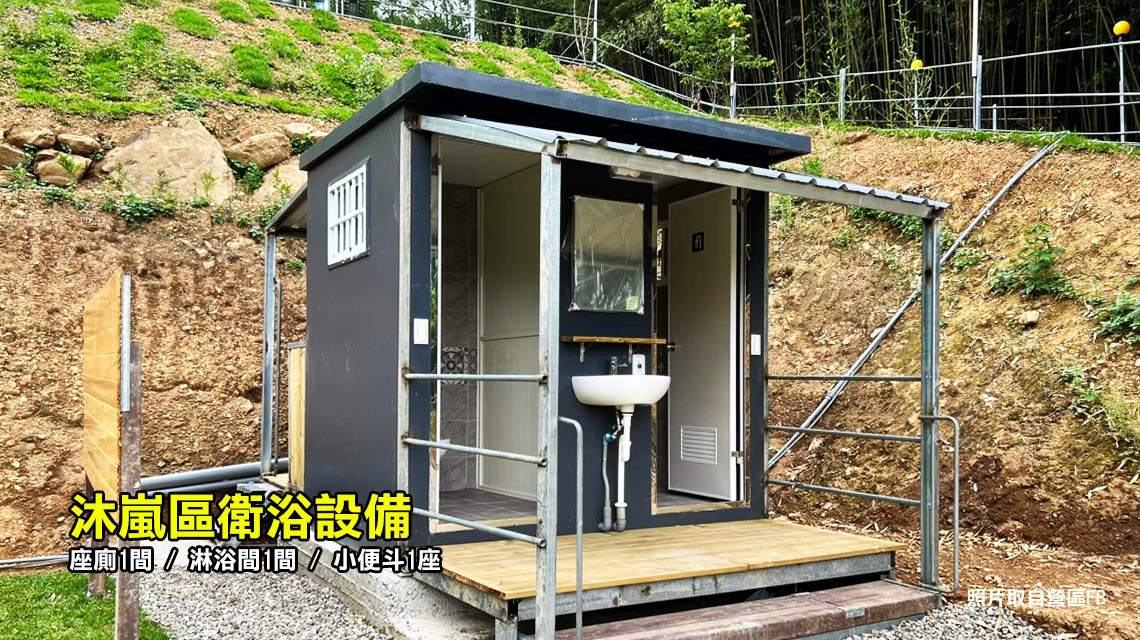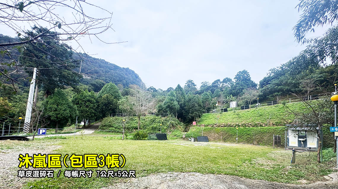 ◎沐嵐區:水槽 2 座、電箱 2 座(每座插孔2個),集中停營位旁,可車露。