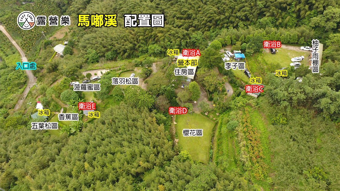 ※ 落雨松區、李子區、柚子區為車可停營位旁(可車露)。