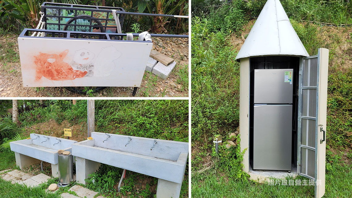 A1包區(可搭4帳);A1、A2區共用洗手檯,冰箱