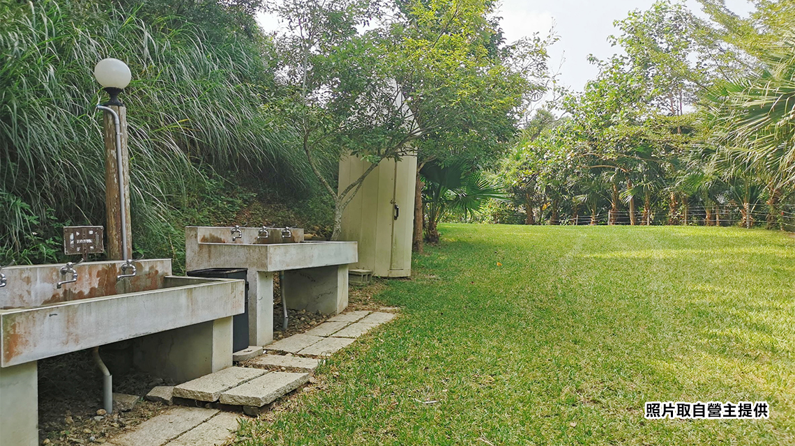 B區共用水槽 1座、電箱 1座(每座插孔 3個),請自備延長線 1米以上,車停營位旁、有推車。