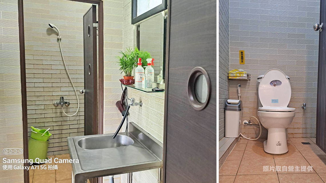 衛浴區:坐蹲皆有,附有吹風機、鏡台、水桶水瓢可使用。