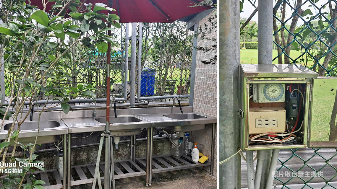 洗滌區貼心有遮陽傘,電源插座數量充足