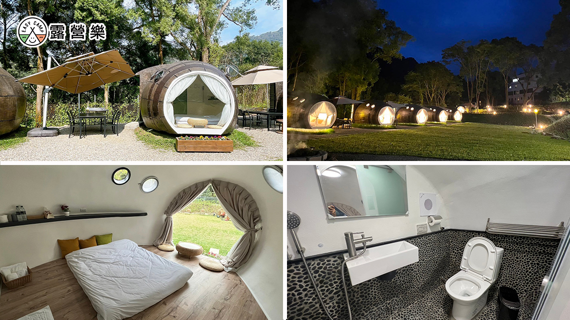 橡木桶:每間可住2大1小,屋內有衛浴、屋外有客廳、桌椅