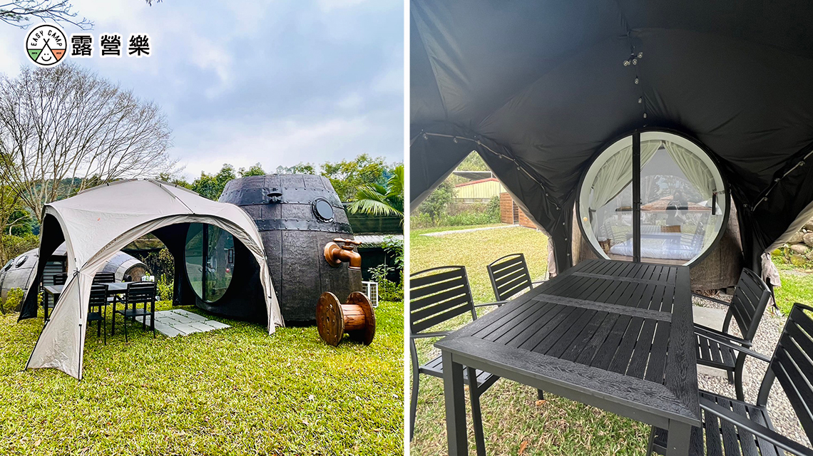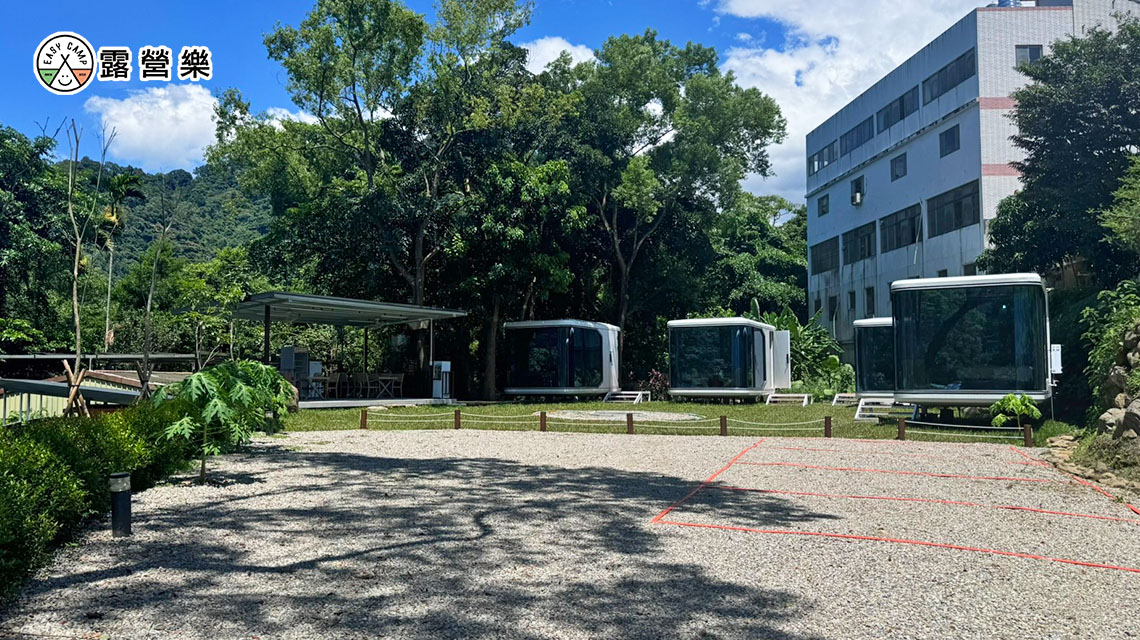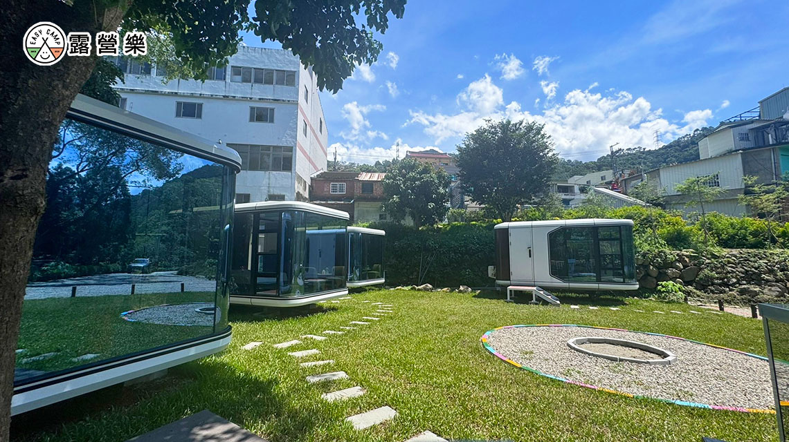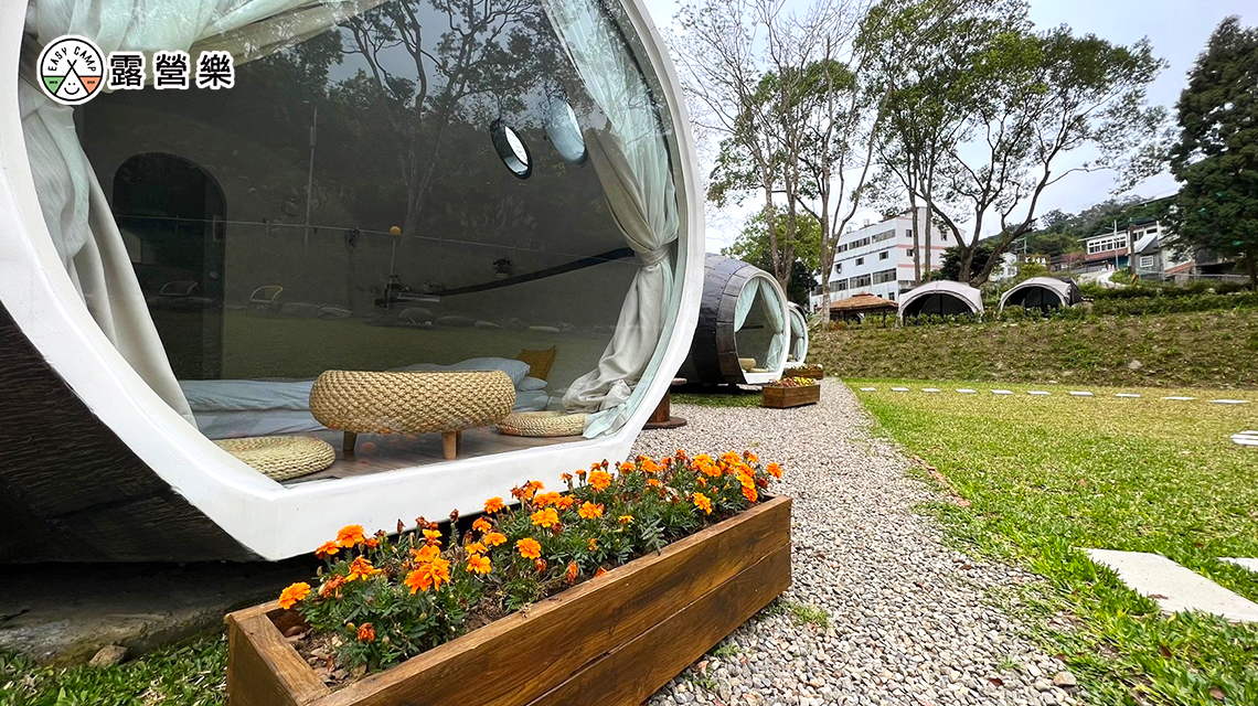 太空艙(2人):可享受前方草皮空間,愛車就停在一旁
