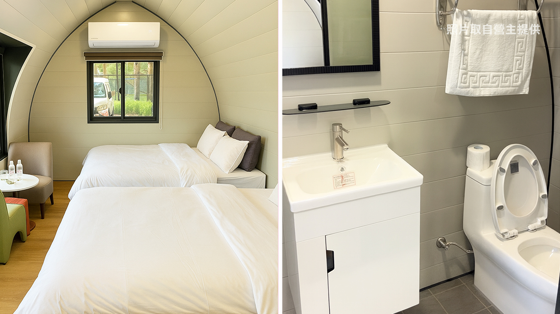 太空艙(2人):每台可住2大1小,滿版玻璃設計,視野及空間感超棒(附衛浴)