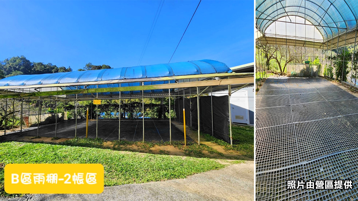B區雨棚 共用水槽 2座、電箱 1座(每座插孔 2個),請自備延長線 3~5米以上,車停營位旁。(車露需洽營主詢問)