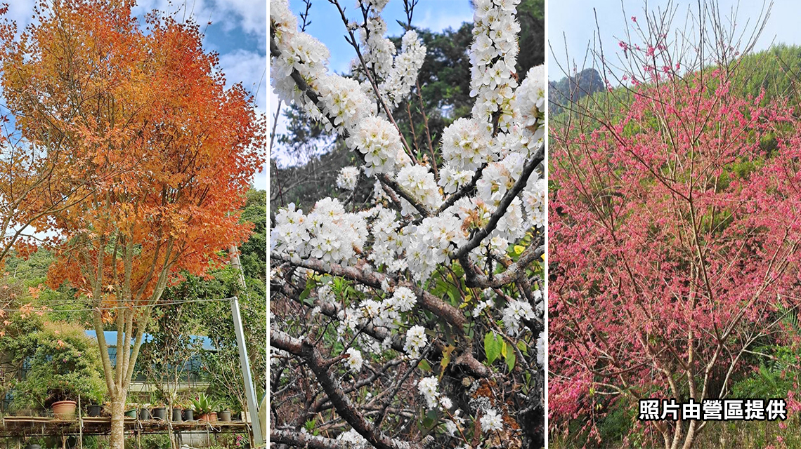 楓葉、李花、櫻花,四季花景不同 增添繽紛色彩